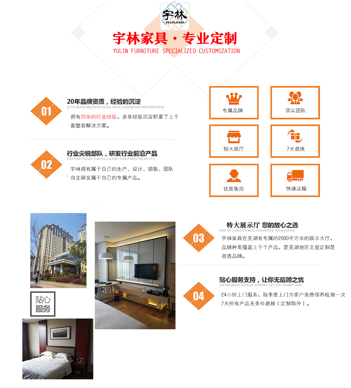蕪湖宇林工貿(mào)有限公司創(chuàng)建于1996年,位于蕪湖高新技術(shù)開(kāi)發(fā)區(qū)南區(qū),占地面積13000余平方米。是一個(gè)集研發(fā)、設(shè)計(jì)為一體的綜合性公司,公司主營(yíng)整體家居定制、酒店家具定制、娛樂(lè)場(chǎng)所配套家具以及軟體系列,團(tuán)隊(duì),銳意革新、進(jìn)去不息的理念,逐漸成為蕪湖家具行業(yè)的生產(chǎn)廠(chǎng)家,并在2006年注冊(cè)了“宇林”牌商標(biāo)。宇林品牌家具依現(xiàn)代與古典相結(jié)合的多種實(shí)木家具、實(shí)木貼皮家具。家具做工精細(xì),多用人工雕刻;其自然、典雅的風(fēng)格在很大程度上引導(dǎo)著人...